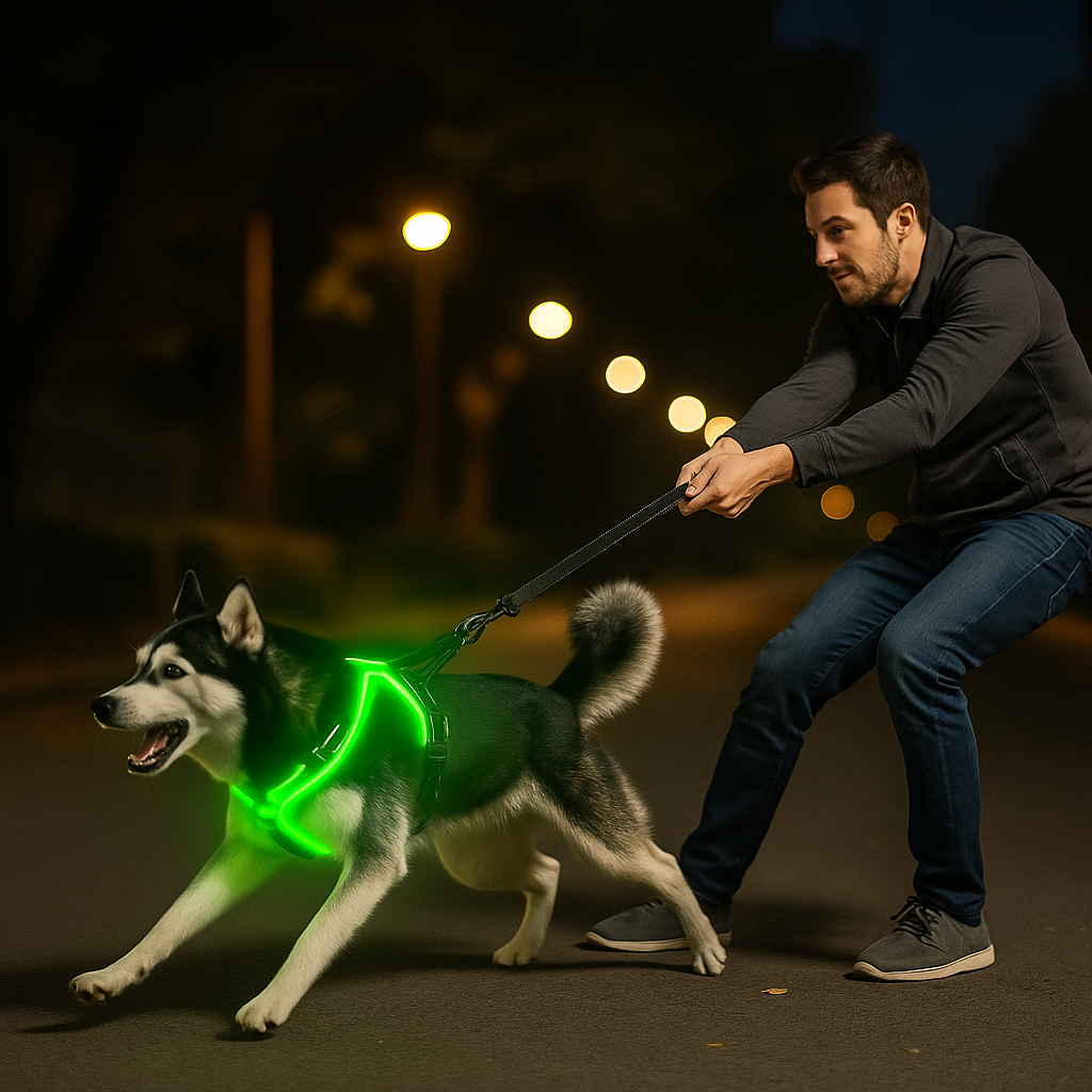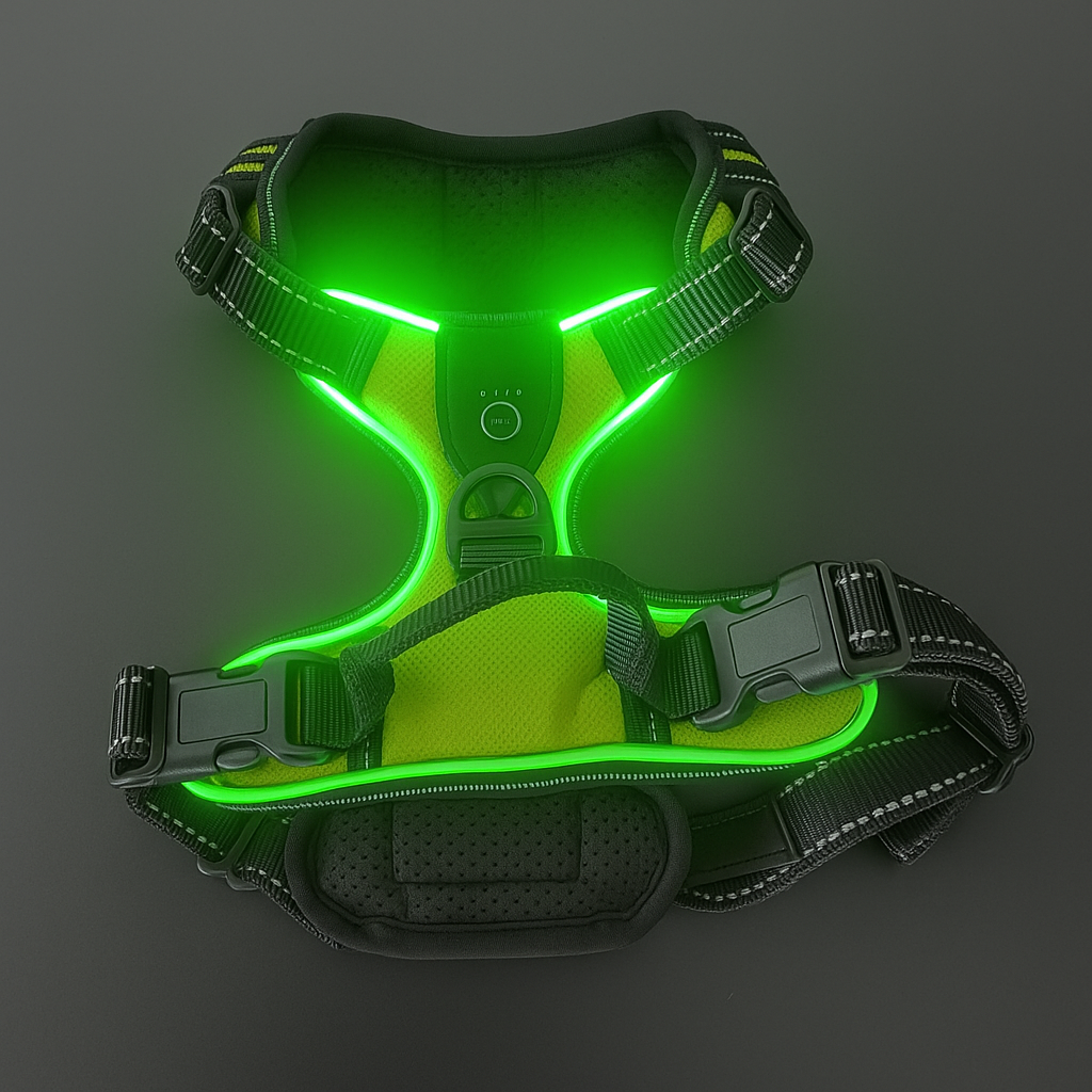 🐾 Le harnais qui éclaire vos sorties et protège votre compagnon !