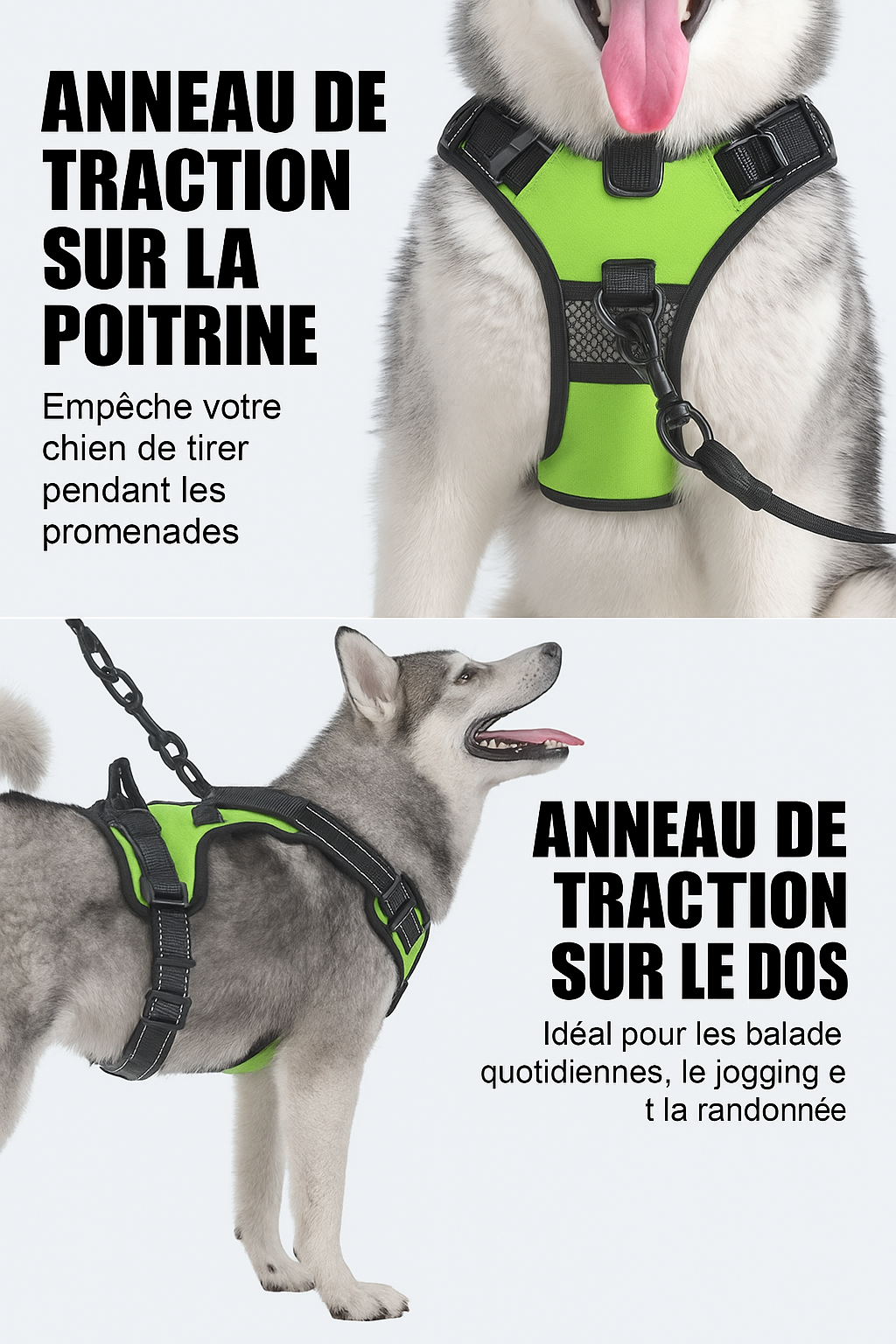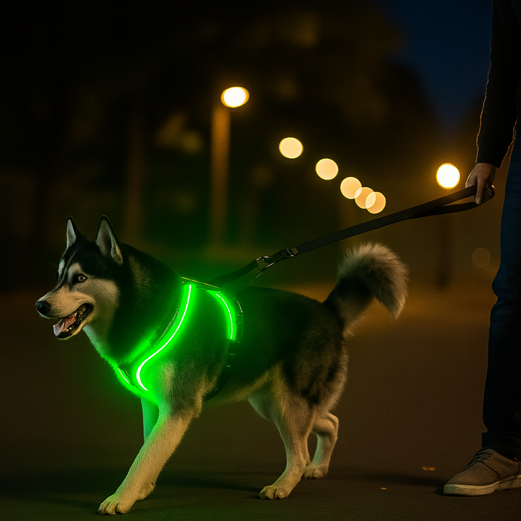 Parce que la sécurité de votre chien ne doit pas être laissée au hasard. Contrairement aux colliers classiques ou aux simples accessoires réfléchissants, ce harnais LED offre une double visibilité (lumières LED + bandes réfléchissantes) et une conception confortable adaptée à toutes les saisons.